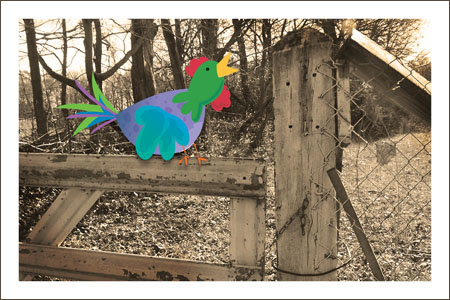 Here's my interpretation of Illustration Friday's "The Year of the Rooster." The images is one I took at my grandparent's farm over Thanksgiving. I think the contrast of the old look and new bright look of the rooster turned out well.